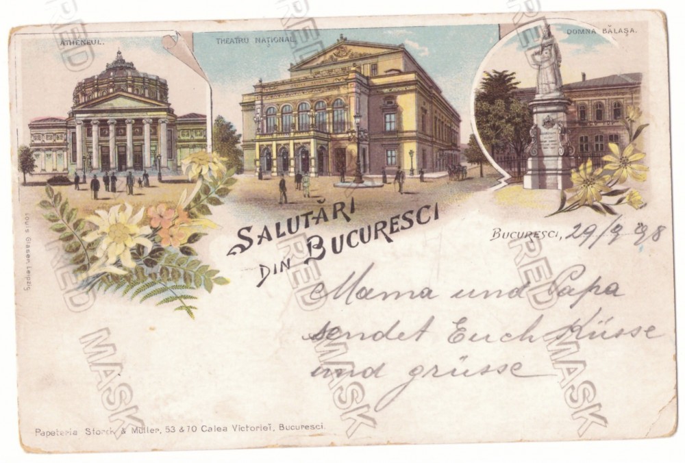 3583 - BUCURESTI, Atheneum, National Theatre, Litho - old postcard - used - 1898