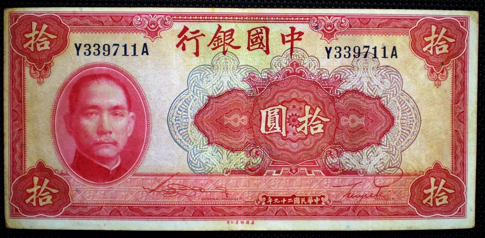 388 CHINA WWII 10 YUAN 1940 SR. 711A