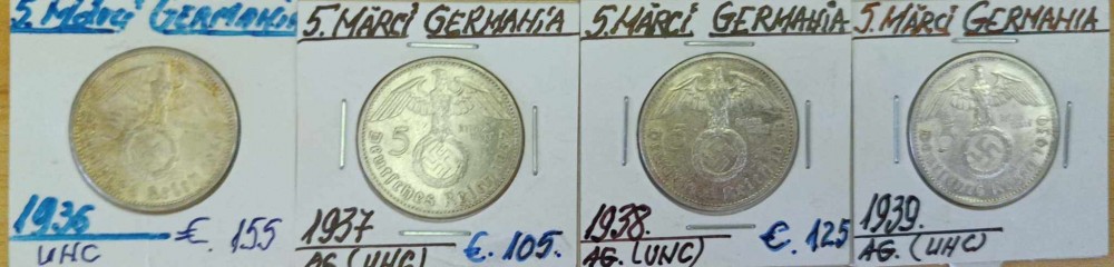 4 Monede de colectie 5 MARCI 1936,1937,1938,1939 UNC
