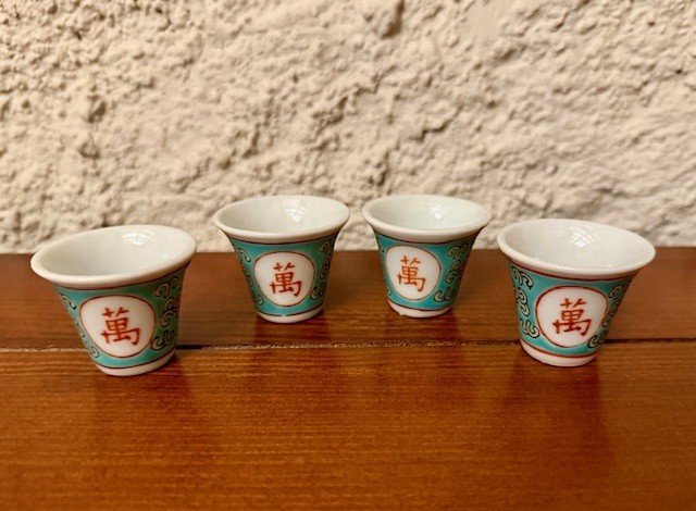 4 PAHARELE DIN PORTELAN CHINEZESC, PICTATE MANUAL H3,6CM