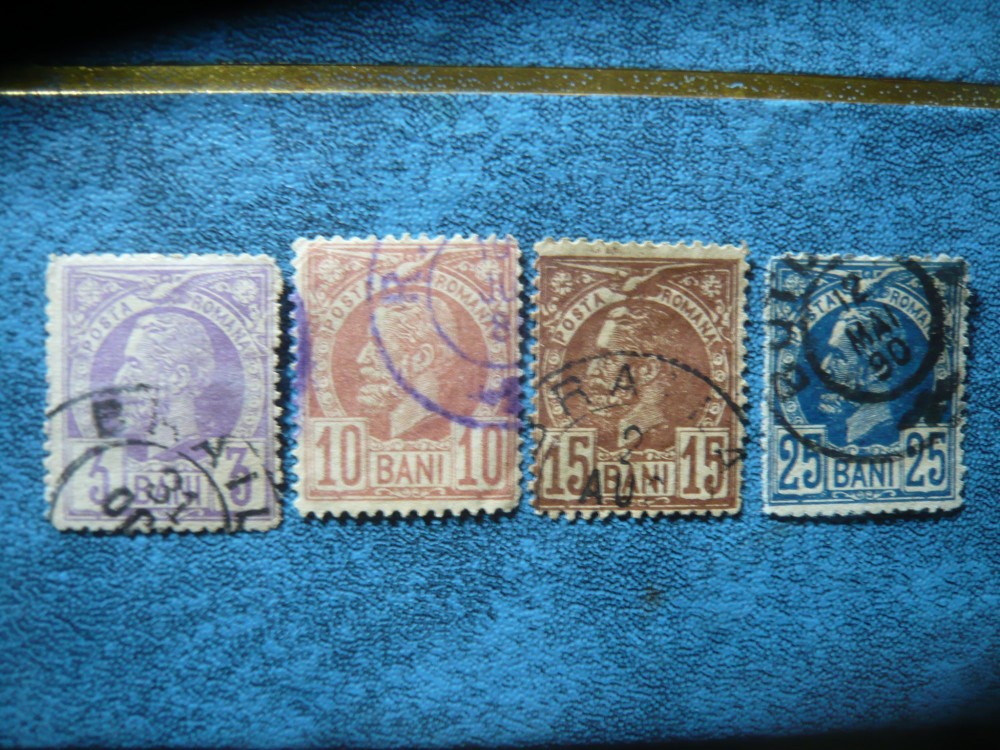 4 Timbre Romania Vulturi 1885 Carol I : 3 , 10 , 15, 25 bani , stampilat
