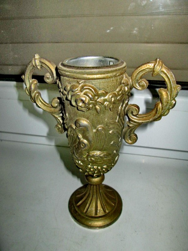 4036-Amfora veche in metal vechi aurie cu vulturi si trandafir.