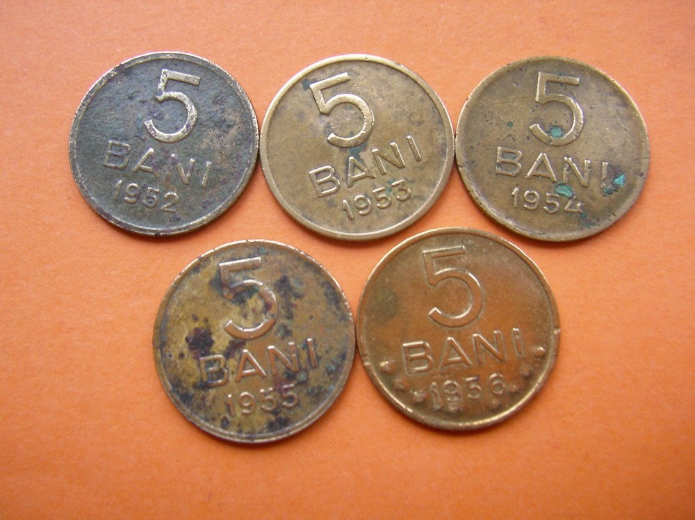 5 BANI 1952, 1953, 1954, 1955, 1956. LOT