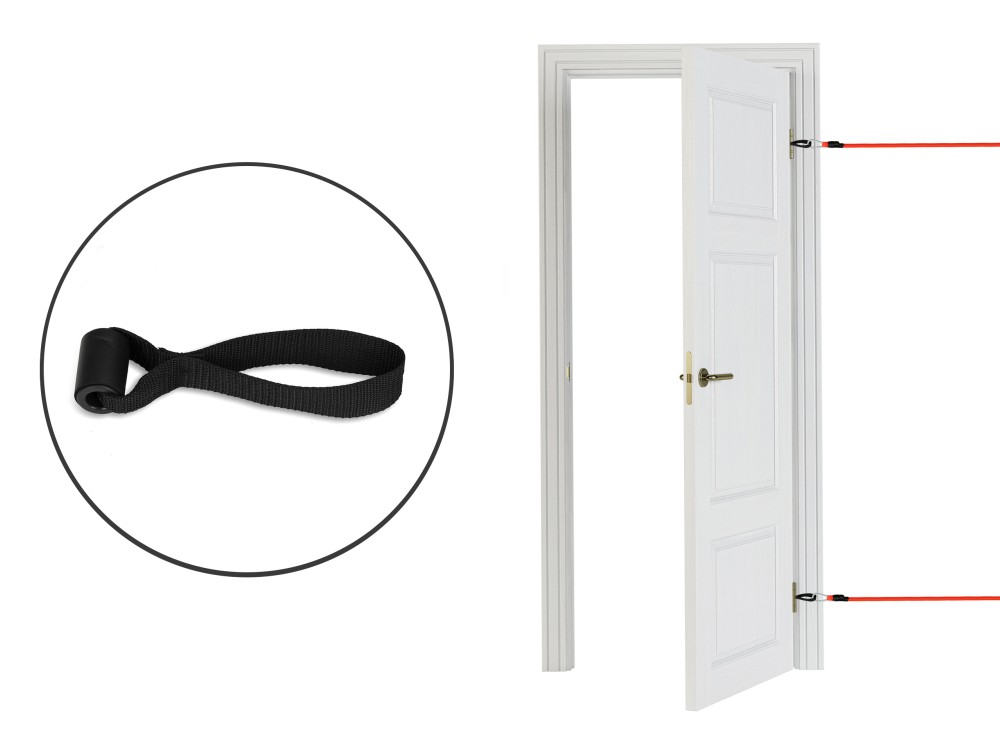 Cârligul robust pentru ușă inclus în kit vă permite să efectuați diferite tipuri de exerciții . Atașarea cârligului este foarte ușoară și nu necesită niciun fel de unelte . Tot ce trebuie să faceți este să plasați partea de capăt a acestuia ( „ ancora ” ) peste sau sub ușă și apoi să o închideți , verificând la capăt dacă zăvorul este blocat corect .