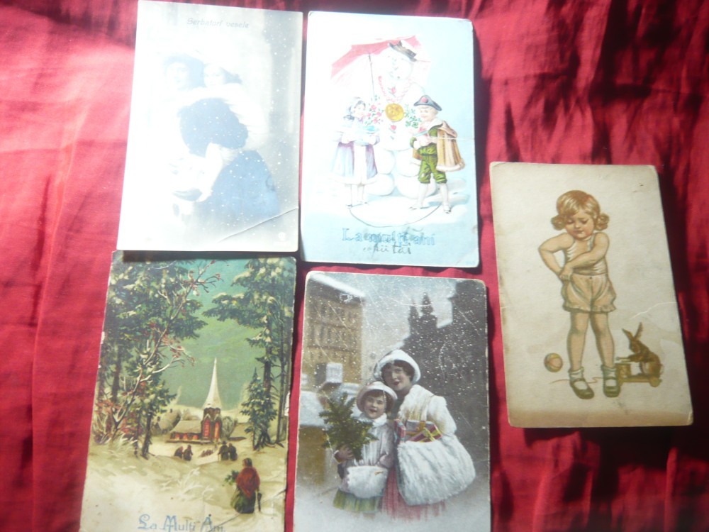 5 Felicitari Romania , cu defecte : 1909 ,1921 ,'22 ,'25 si '30