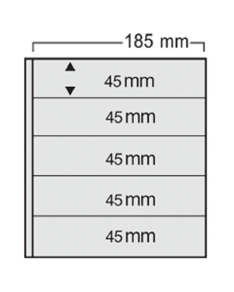 SAFE 875PA Ideal pentru timbre, carti postale, plicuri Prima Zi Material gros, cu 11 perforatii, de inalta calitate. Pentru colectionabile de maxim 45 x 185 mm. Dimensiuni folie: 248 x 203 mm 5 buzunare pe fiecare fata a foliei. Pachet de 5 folii. Pentru sistemul Variant