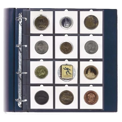 Folii transparente, rigide, de inalta calitate, dintr-un material ce nu ataca monedele. Fiecare folie pentru monede in cartonase are 12 de buzunare de 67 x 67 mm. Dimensiuni folie: 242 mm latime x 298 mm inaltime. 4 perforatii la o distanta 80 x 80 x 80 mm Set de 5 folii.