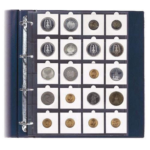 Folii transparente, rigide, de inalta calitate, dintr-un material ce nu ataca monedele. Fiecare folie pentru monede in cartonase are 20 de buzunare de 50 x 50 mm. Dimensiuni folie: 242 mm latime x 298 mm inaltime. 4 perforatii la o distanta 80 x 80 x 80 mm Set de 5 folii.