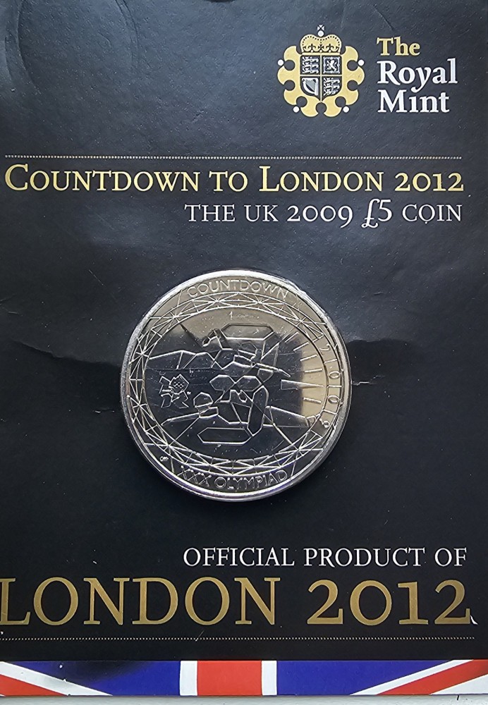 5 pounds 2009 Marea Britanie, XXX Olympiad, Countdown 3, Bunc, km#1121, Coincard usor șifonat