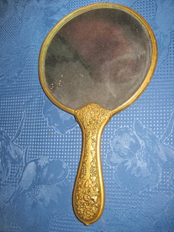 569a- Oglinda toaleta dama veche bronz deosebit lucrata.