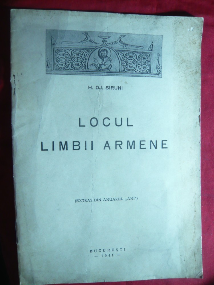 H.Dj Sirunii - Locul Limbii Armene - Ed. 1941 Tipografia Carpati ,16 pag.