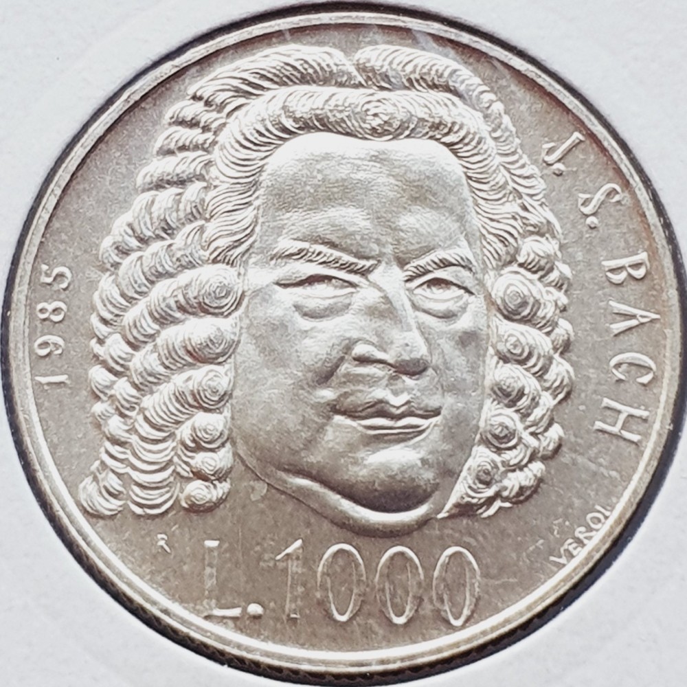 697 San Marino 1000 Lire 1985 Johann Sebastian Bach km 183 argint