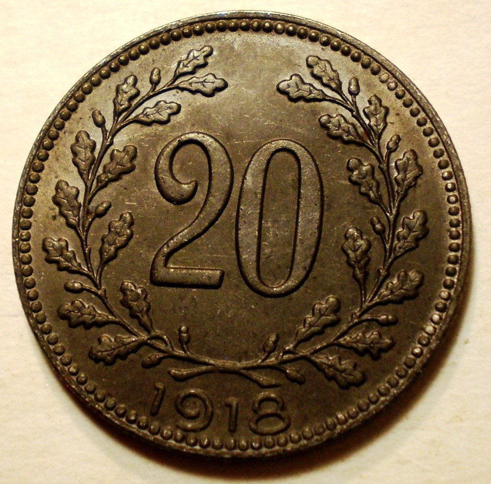 7.077 AUSTRIA WWI 20 HELLER 1918 XF