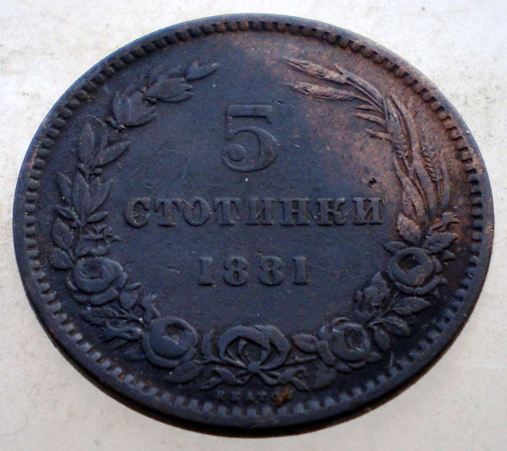 KM# 2, 5 STOTINKI Bronze. Ruler: Alexander I as Prince. Moneda din imagine.