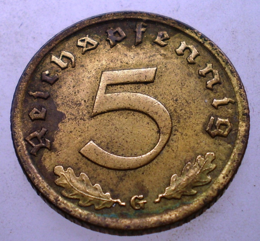 7.271 GERMANIA 5 REICHSPFENNIG 1938 G