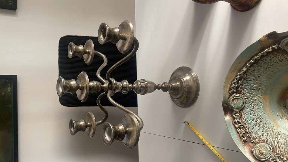 7 sfeșnice din inox/aliaj: - 1 sfeșnic din inox cu 5 locuri pentru
