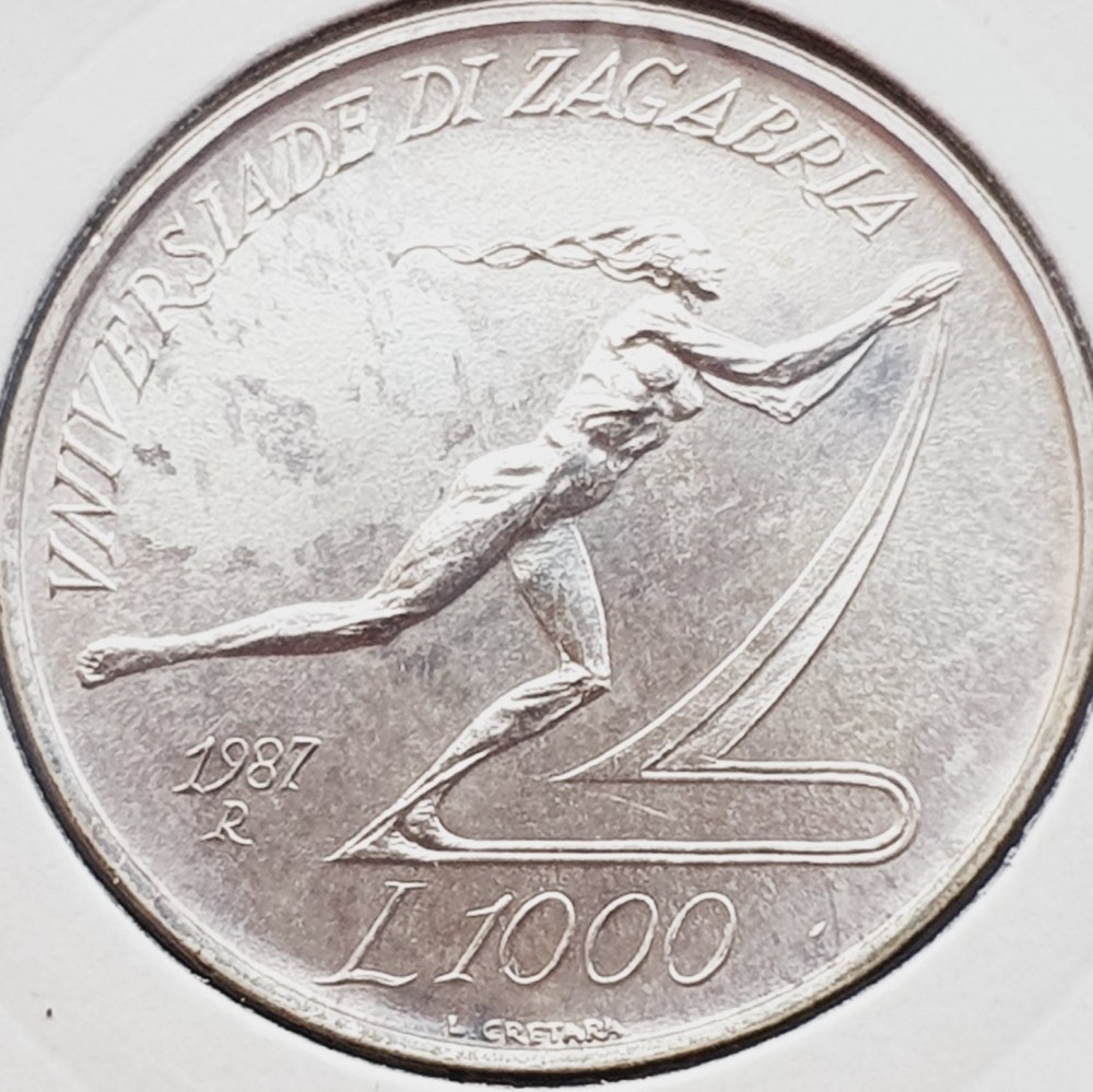701 San Marino 1000 Lire 1987 Zagreb University Games km 214 argint