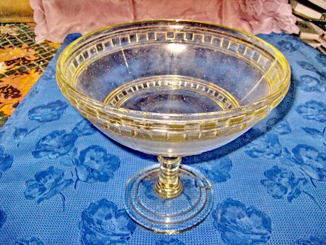 719-Fructiera din sticla cu picior inalt. Inaltime 20 cm, diametrul 22, baza- 12 cm.