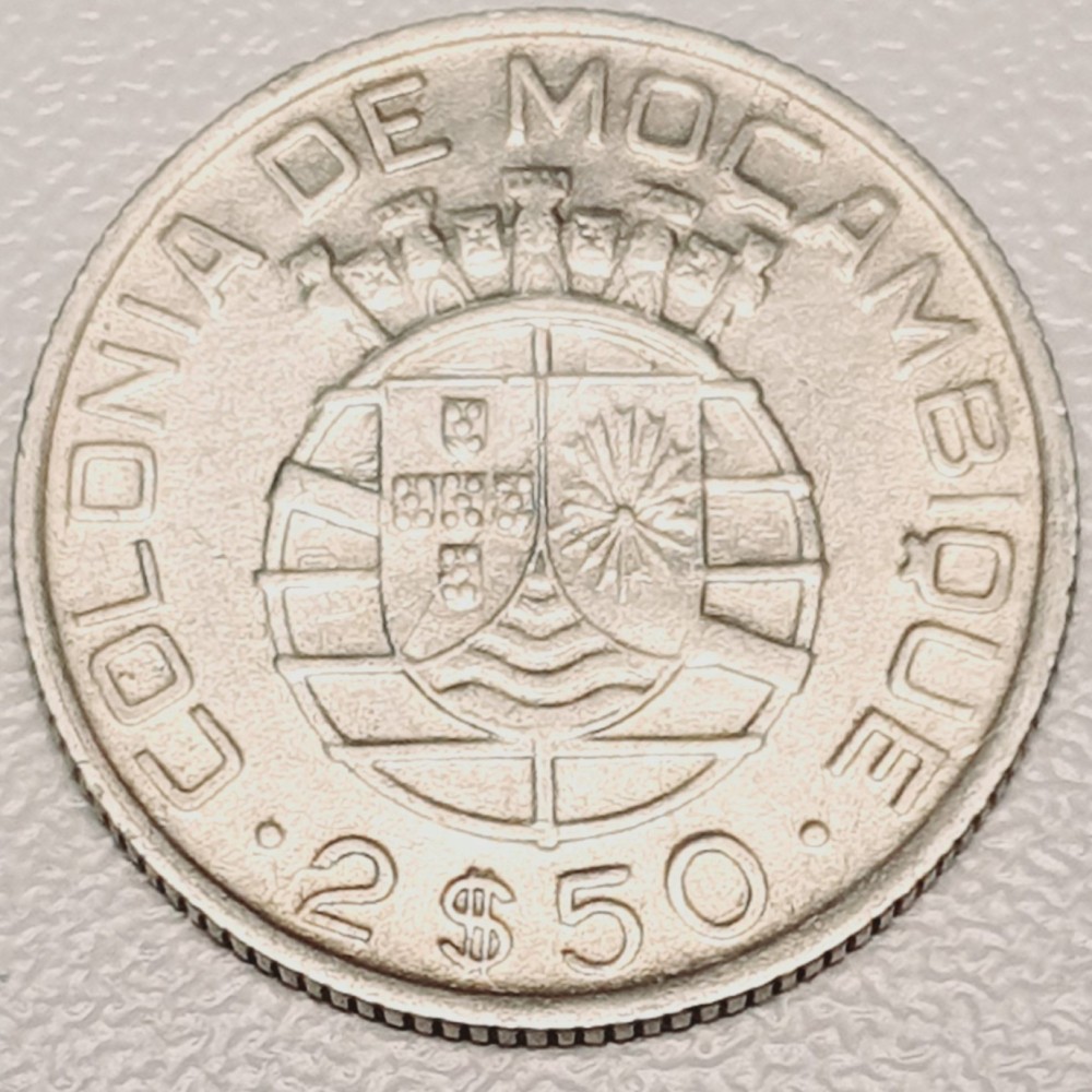 799 Mozambic 2 1/2 escudos 1950 km 68 argint