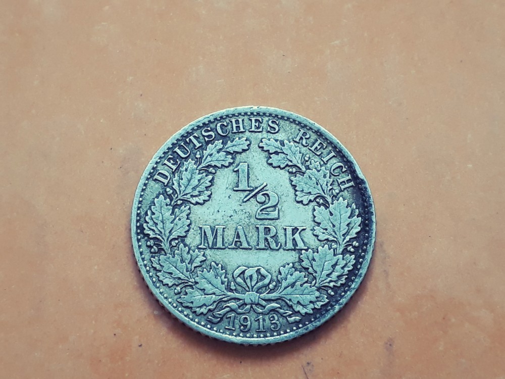 #83 1/2 Mark 1913 D Germania argint / 1/2 marca