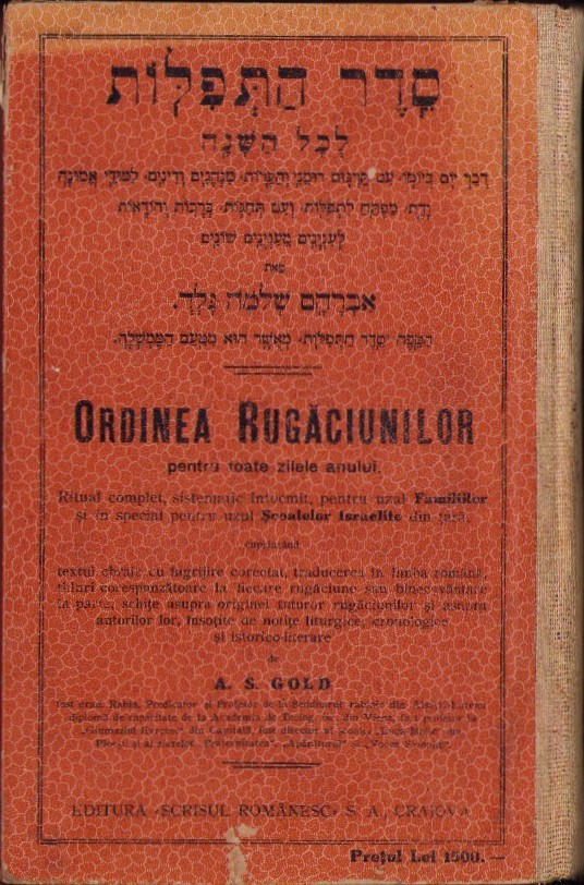 pentru uzul Școalelor Izraelite din țară de A S Gold, fără an,