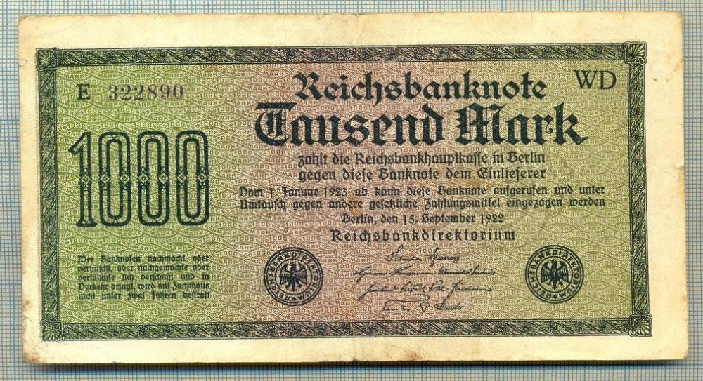 A 186 BANCNOTA-GERMANIA - 1000 MARK- anul 1922 -SERIA 322890-starea care se vede