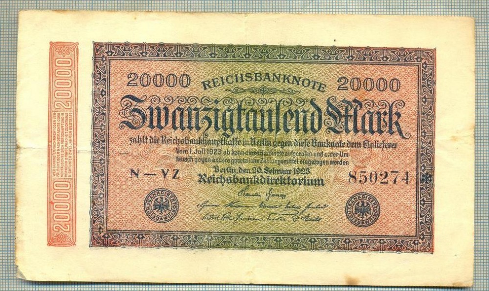 A 340 BANCNOTA-GERMANIA -20 000 MARK-anul 1923-SERIA 850274-starea care se vede