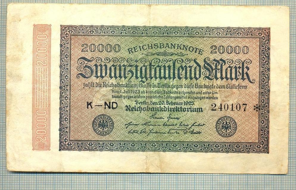 A 341 BANCNOTA-GERMANIA -20 000 MARK-anul 1923-SERIA 240107-starea care se vede