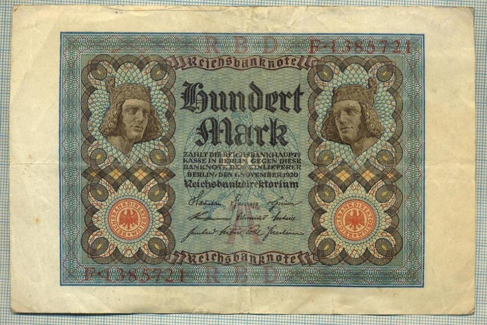 A 482 BANCNOTA-GERMANIA -100 MARK -ANUL 1920-SERIA 1385721 -starea care se vede