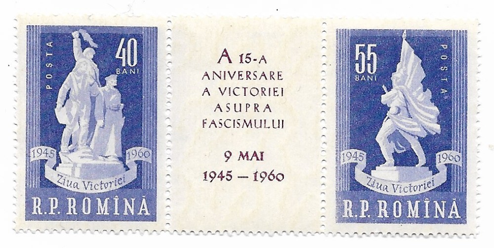 A XV-a aniversare a victoriei asupra fascismului, triptic dantelat, serie completa, neobliterata, 1960. Stare foarte buna.