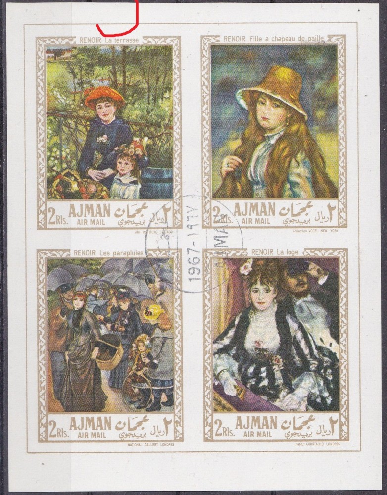 A10 XC 53 - Colita foarte veche - Ajman - pictura - nedantelata - bloc