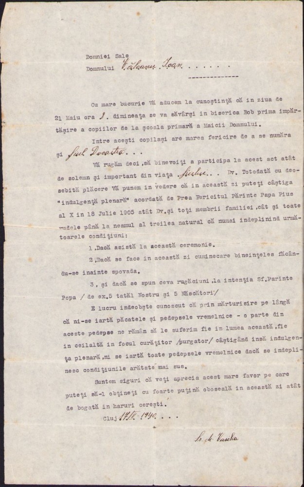Act emis de biserica Ioan Bob, Cluj, 1940