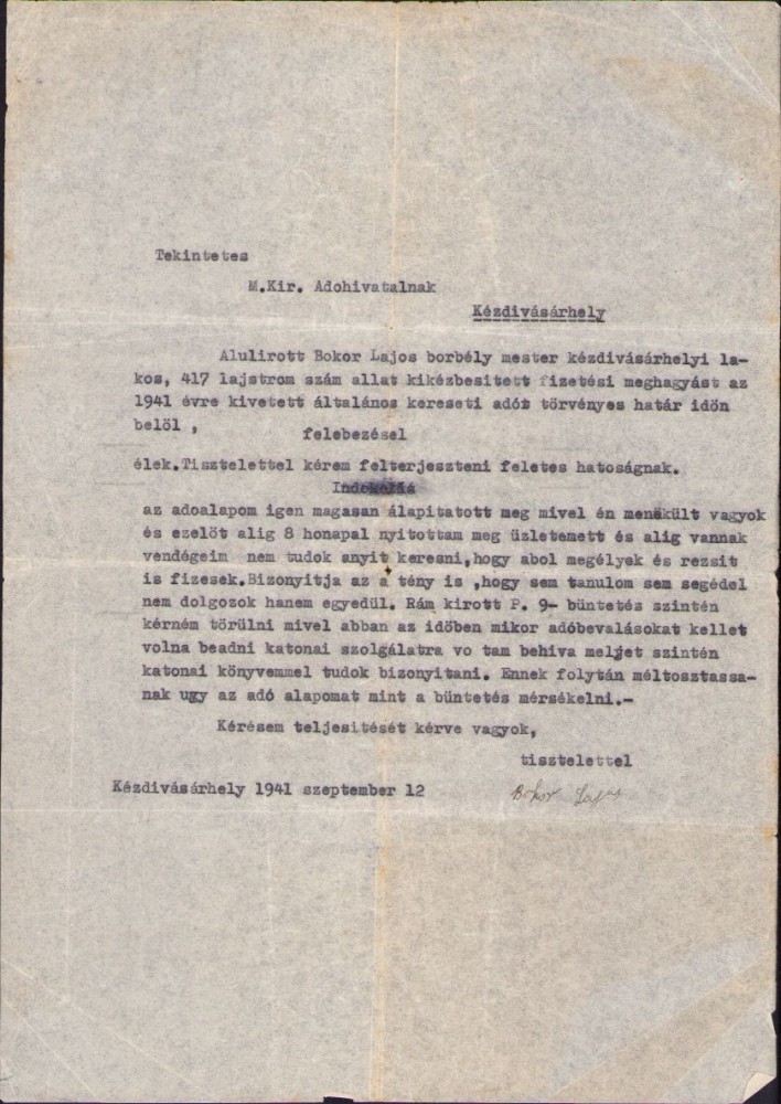 Act meșter bărbier, 1941, Târgu Secuiesc