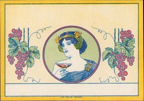 A1084 Probă etichetă sticlă vin interbelică, Lito Csendes, Timișoara
