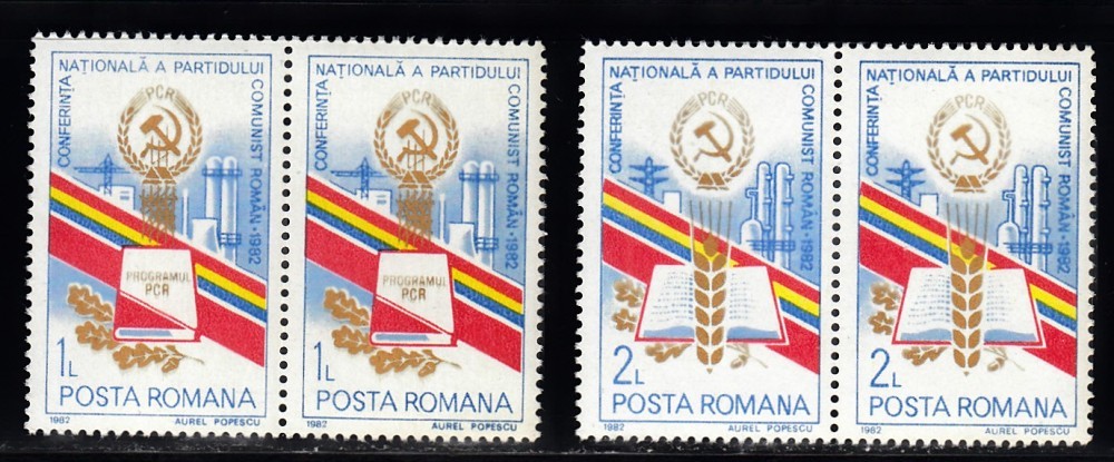 A11 TX10 7 - 1982 - Conferinta nationala a PCR - perechi de cate doua timbre