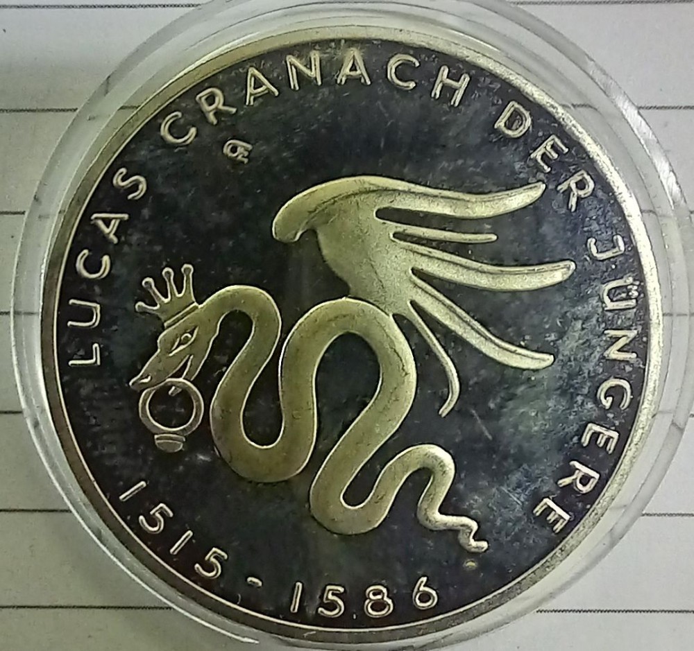 MONEDA DIN ARGINT GERMANIA - 10 EURO 2015, LIT. G, 150 ANI DE LA NASTEREA LUI LUCAS CRANACH CEL TANAR, STARE PROOF