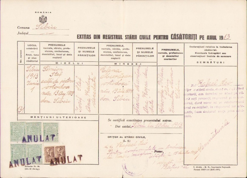 A1138 Extras registru stare civilă, Sibiu, 1947