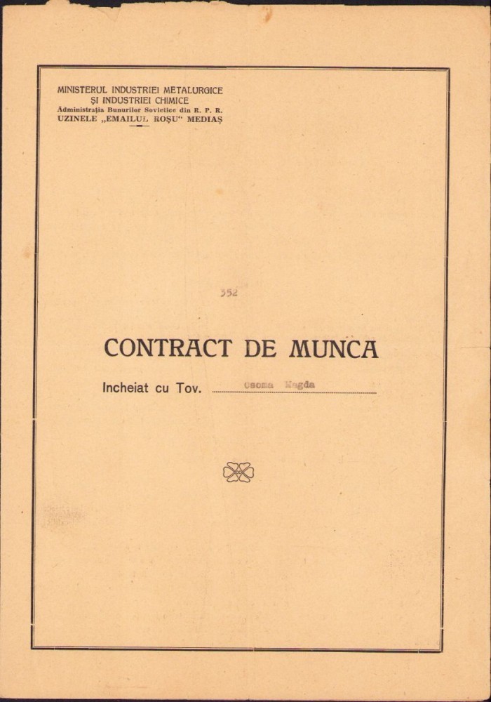 Contract de muncă, 1949, Uzina „Emailul Roșu”, Mediaș