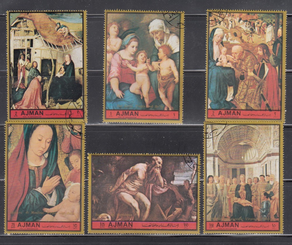 A12 S6 9 - Timbre foarte vechi - Ajman - pictura religioasa