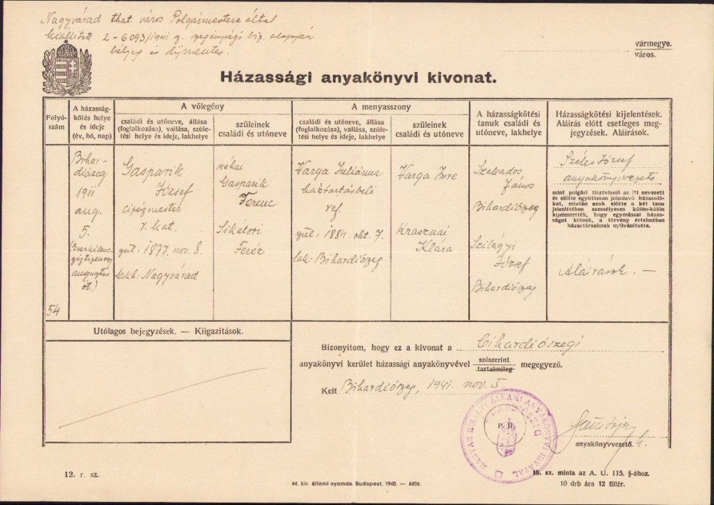 Extras registru căsătoriți, 1941, Diosig, județul Bihor
