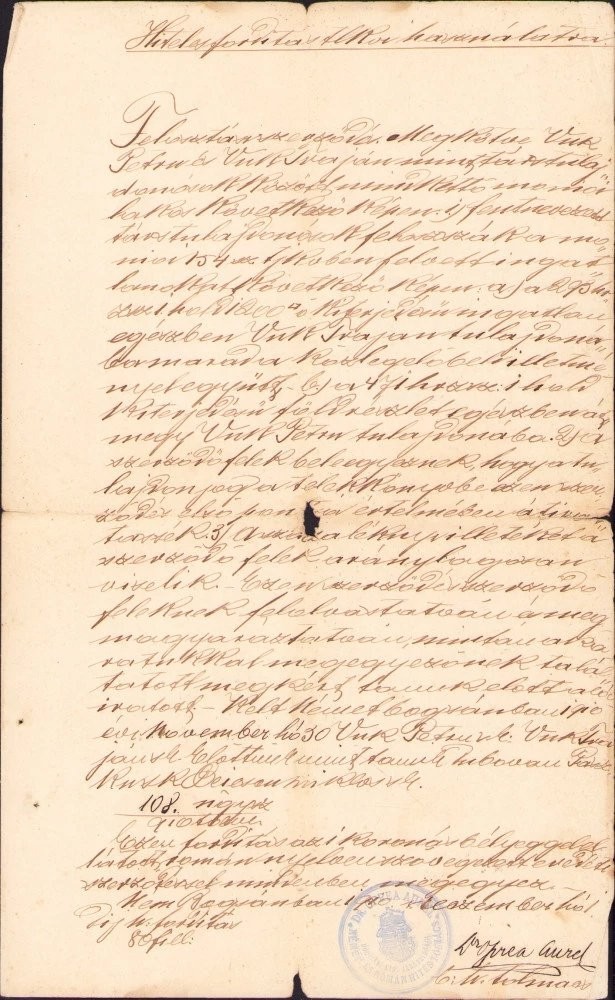 A1305 Act, 1910, semnat olograf Aurel Oprea, Bocșa, județul Caraș-Severin