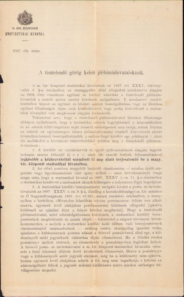 A1313 Circulară minister către parohiile ortodoxe, 1908, Budapesta