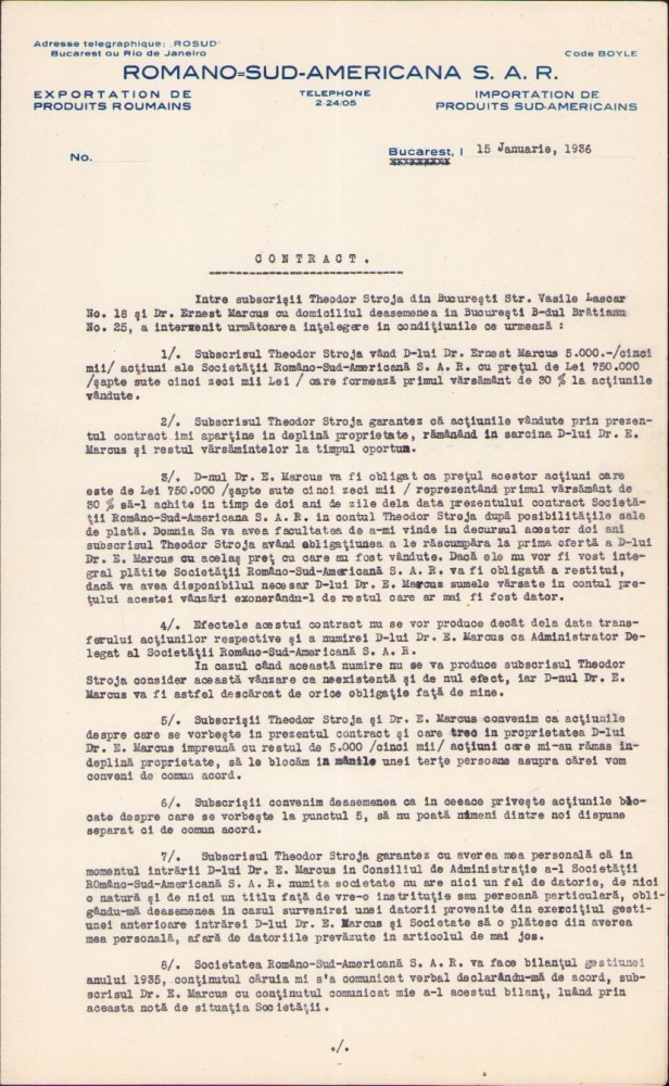 A1337 Contract Societatea Româno-Sud-Americană, 1936