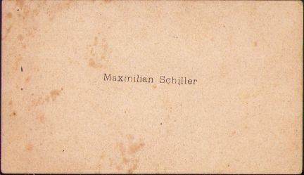 Carte de vizită Maxmilian Schiller, 1883, cu notă de mână Pașcani