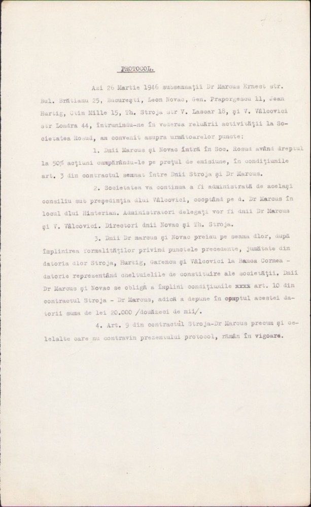 Protocol academician Victor Vâlcovici – Societatea Rosud, 1946
