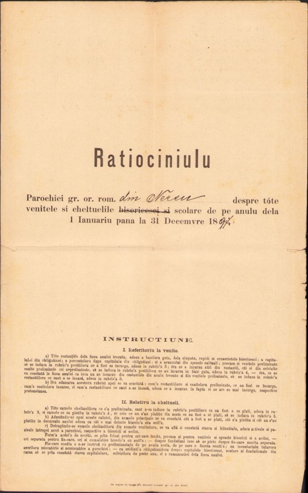 A1546 Ratiociniulu, act cu 4 ștampile bisericești românești diferite, județul Timiș, 1897