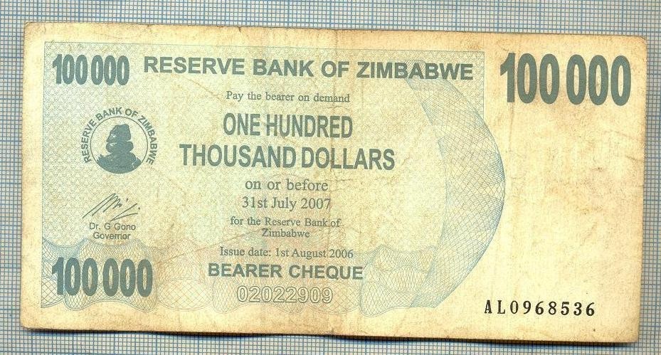 A1624 BANCNOTA-ZIMBABWE- 100 000 DOLLARS -2006-SERIA 0968536-starea care se vede