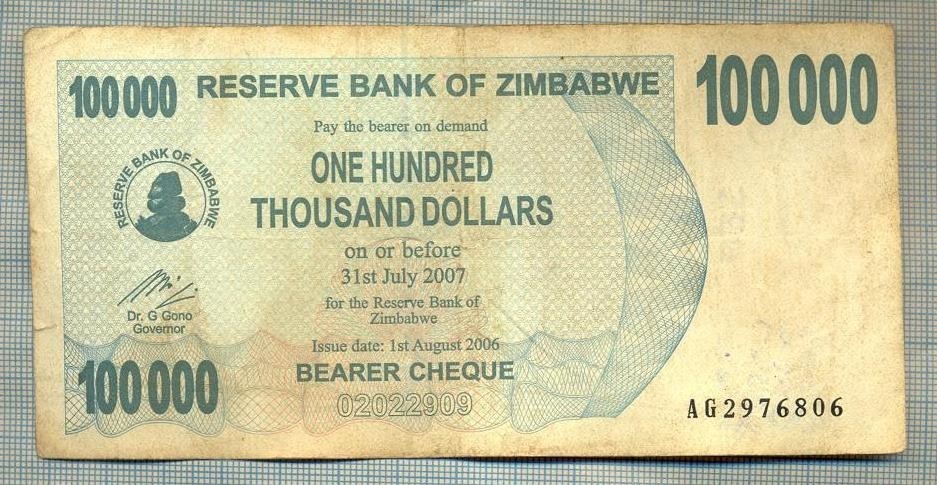 A1640 BANCNOTA-ZIMBABWE- 100 000 DOLLARS -2006-SERIA 2976806-starea care se vede