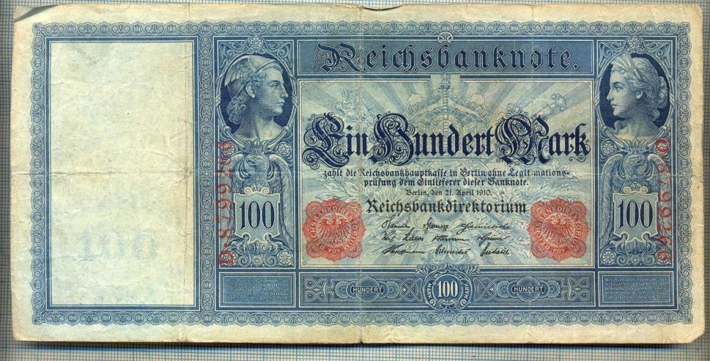 A1732 BANCNOTA-GERMANIA- 100 MARK -21.4.1910-SERIA8799266 -starea care se vede