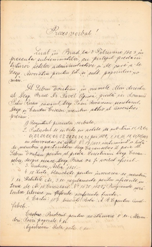 Act scris și semnat olograf de Sabin Evuțian la Brad, județul Hunedoara, 1923.